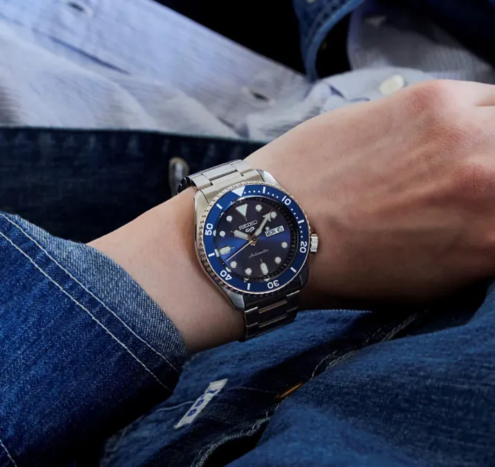 The Seiko 5 watches are sturdy and can withstand extreme physical exercise: tank top joggers and performance sneakers with the Seiko 5. Watch to keep track of the time; one more silky finish line with that.